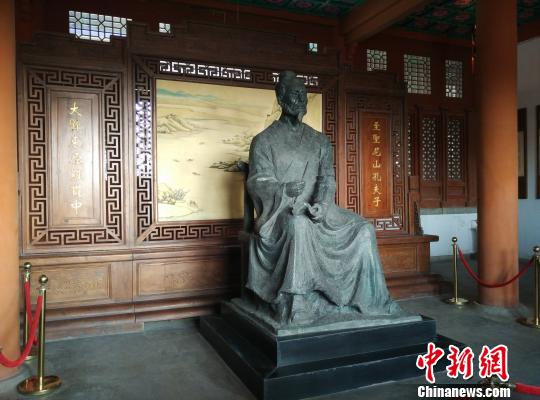 罗贯中纪念馆内的,参加活动人员瞻仰罗贯中塑像。 孙婷婷 摄