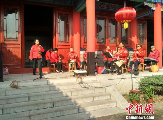 在罗贯中纪念馆内,罗贯中戏剧社的人在演唱戏剧。 孙婷婷 摄