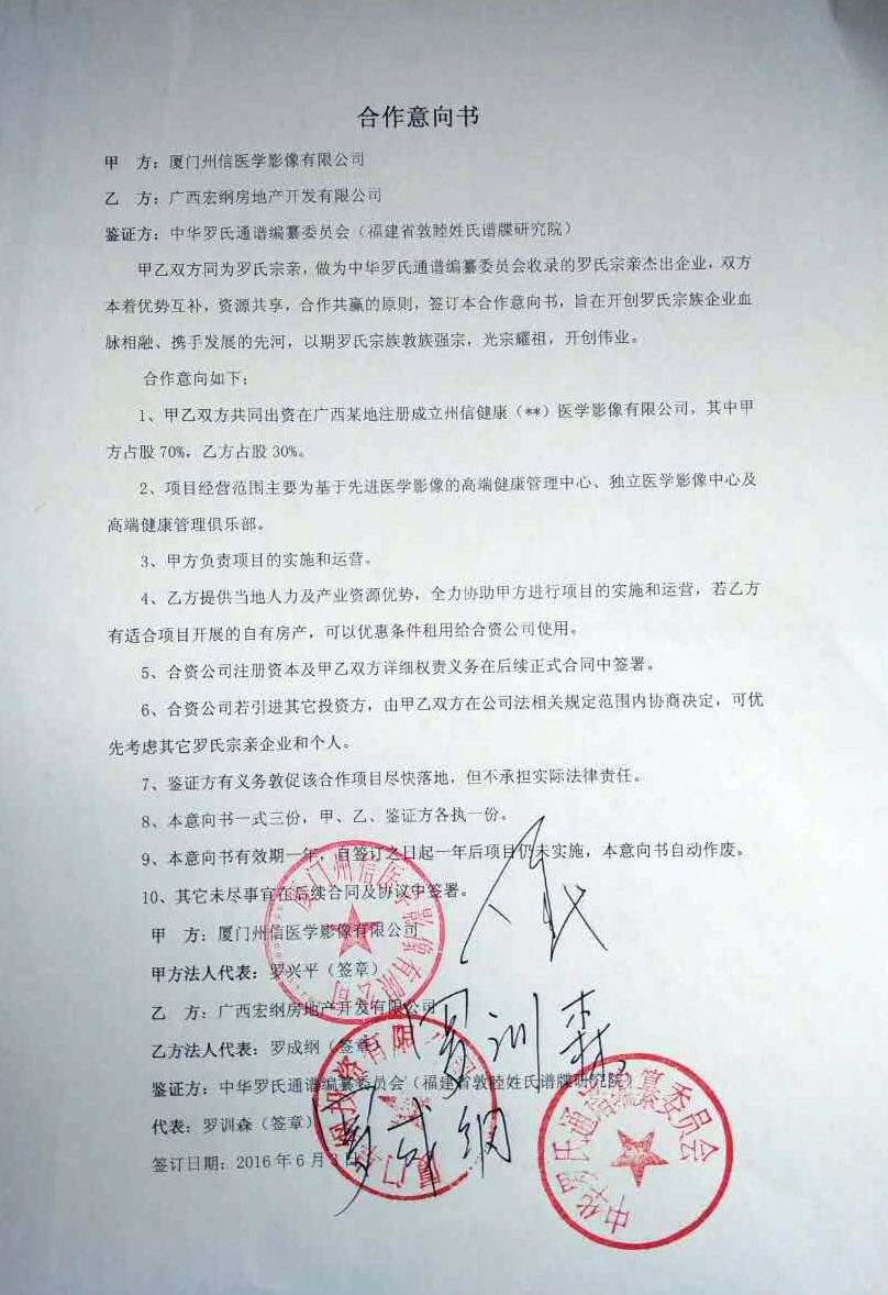 协议书已于2016.6.3,在厦门悦华酒店,《中华罗氏通谱》武夷山座谈会第三次筹备会暨厦门秘书处例会上草签。