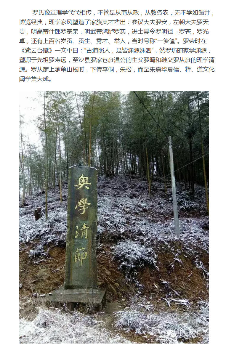 2016.7.6,中华罗氏通谱编纂委员会常务编委、福建省敦睦姓氏谱牒研究院常务理事、福建省沙县豫章贤祠(省级文保单位)管委会理事长罗德湘(沙县原建设局长)告知,在明溪紫云,正在启动复兴中华博大精深的“闽学村”文化项目,其发起者就是我们罗氏宗亲罗志明先生,是宋·理学家、豫章先生——罗从彦的后裔。
