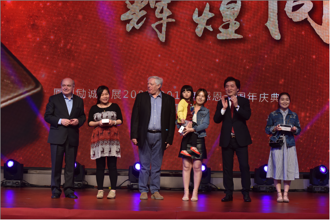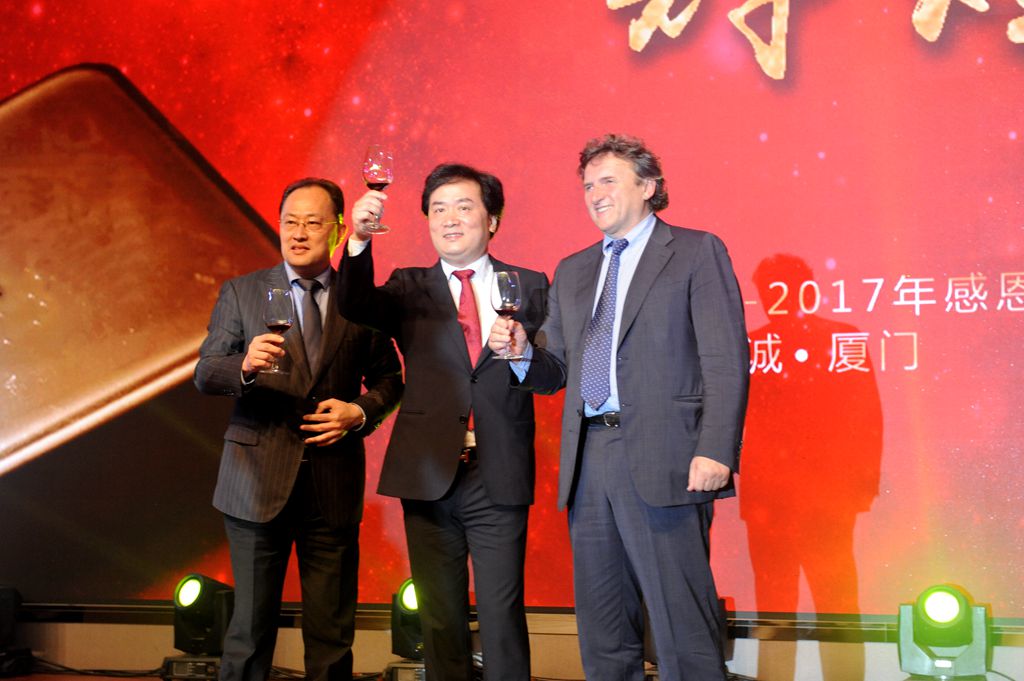 四百多人的庆典晚宴,高朋满座,喜气洋洋,厦门市会展局王局长的充分肯定、四位专程从意大利远道而来的业务伙伴,热情洋溢的意大利语祝辞、员工们自编自演的节目,丰厚奖品的抽奖,为庆典增加了浓郁的国际、欢乐喜庆的氛围。