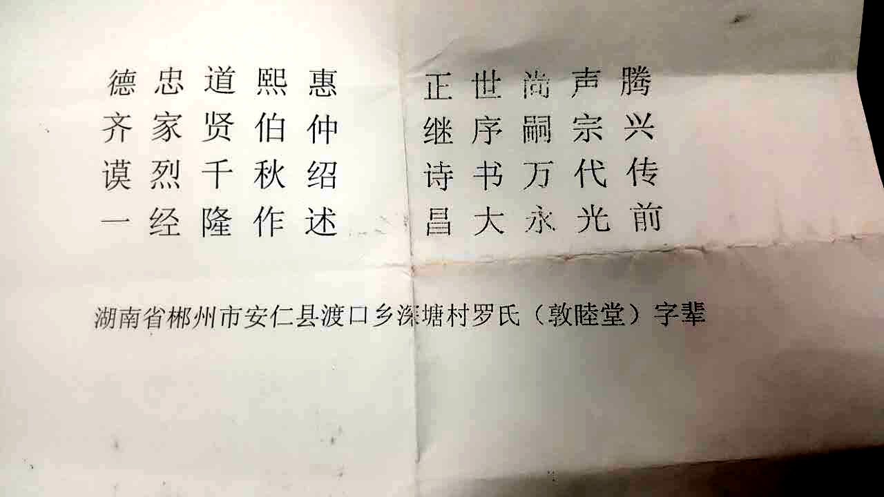 这应是敦睦堂的名,字,各二十字的班辈,有堂号,有字辈,祖籍湖北的罗万祥应很容易找到同宗。
