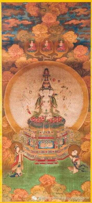 据罗随祖介绍,此次展品中,最珍贵的是他的外祖父商衍瀛(光绪进士)给女儿的随嫁品—明代工笔重彩千手千眼观音像。其他珍品还有唐人写经残卷、明代水晶闲文印章等。
