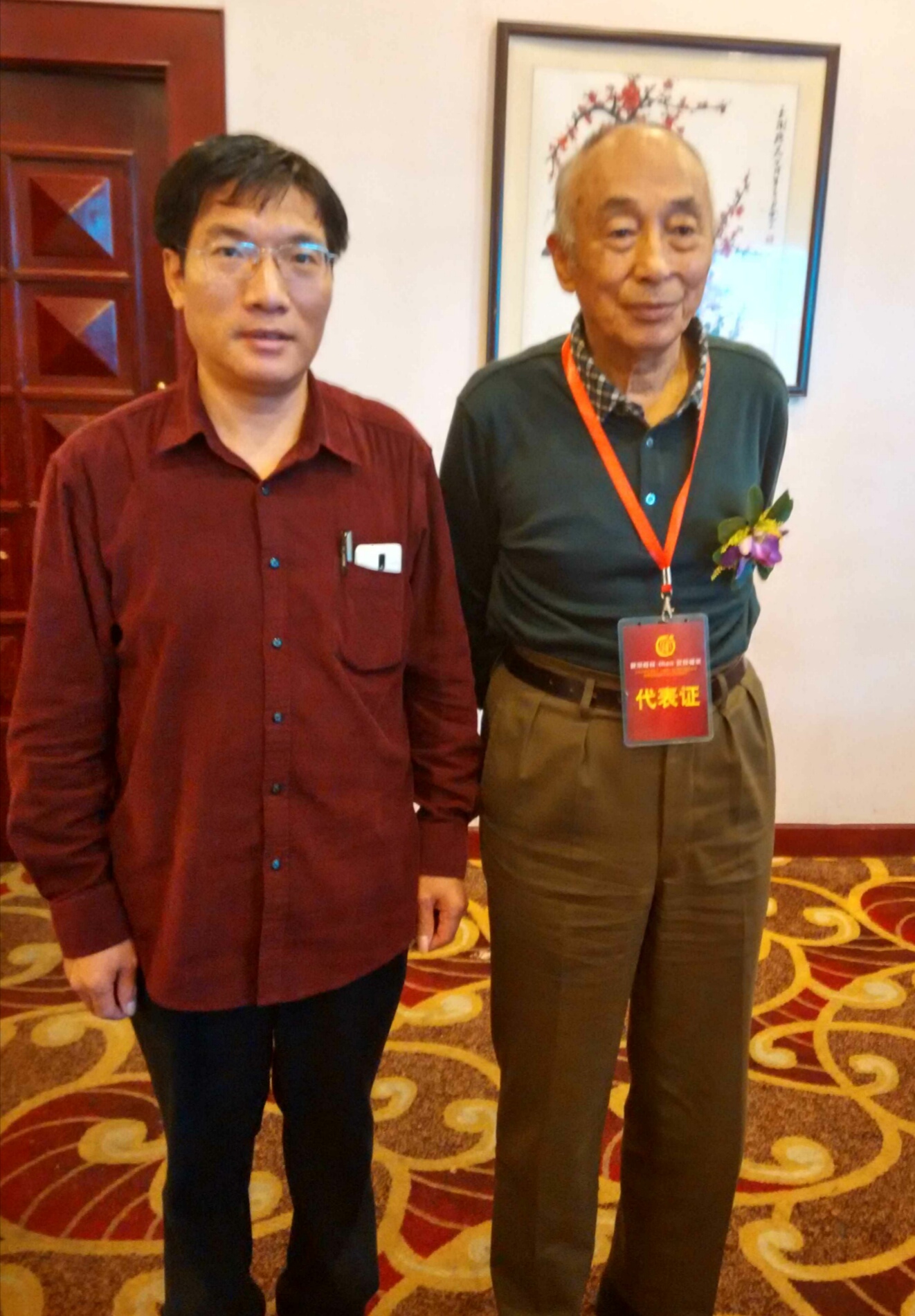 左,罗真理,中国书协会员,惠州“如一堂”书画院院长(因临时有事,误过9日晚合影,以2015.11.8《中华罗氏通谱》厦门会议合影代之)