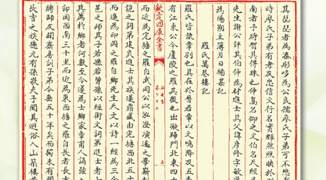 不知何故,如此重要之谱序,竟在民国版《桃林罗氏族谱》中被遗漏,所幸,《四库全书》版《整庵文集》中保存了此极其重要的罗氏历史文献。