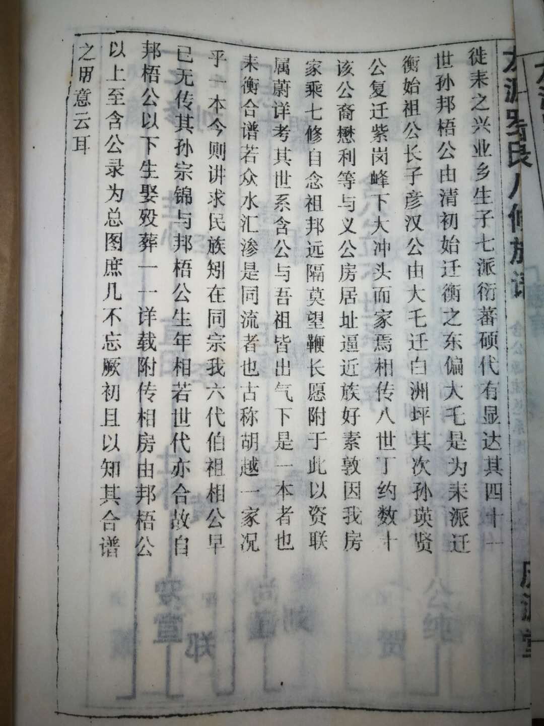 含公与吾祖皆出熂下(此句有误,含公为晋朝人,熂下始祖崱公为唐五代人,已考证:崱公乃晋之罗含,唐之罗隐之后),是一本者也。耒衡合谱,若众水会渗,是同流者也。古称胡越一家,况乎一本?今则讲民族矧在同宗。 我六代伯祖相公早已无传,其孙宗锦与邦梧公生年相若,世代亦合,故自邦梧公以下,生娶殁葬,一一详载,附传相房,由邦梧公以上至含公,录为总图,庶几不忘厥初,且以知其合谱之用意云耳。