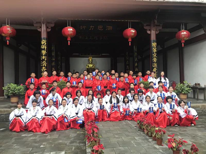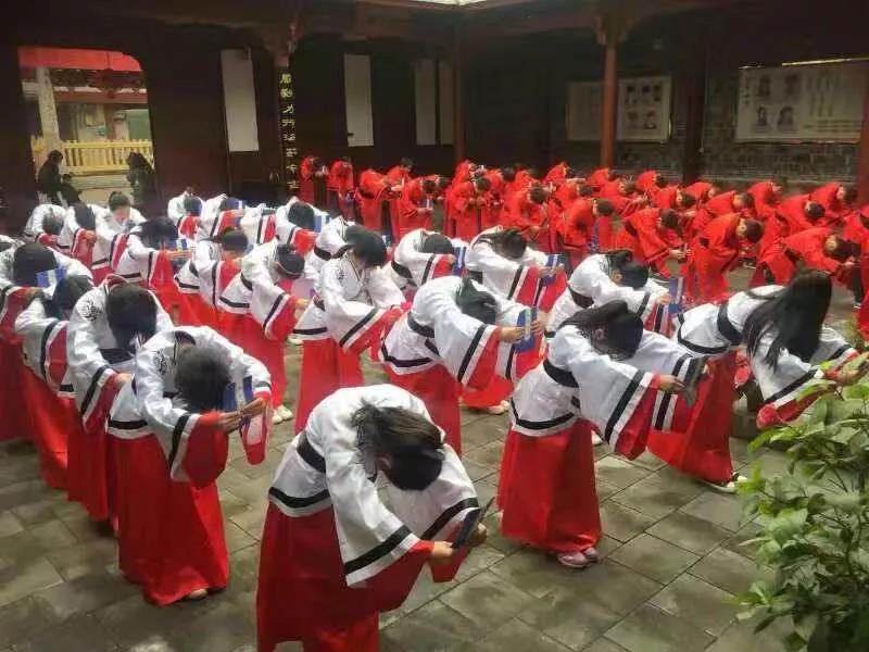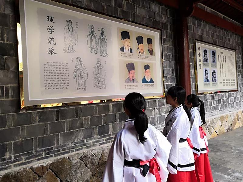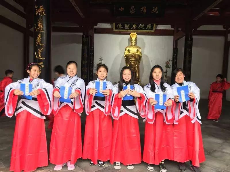 随后,同学们换上汉服。进入豫章贤祠,拜圣贤、听师训,实践古人拜师求学的过程,切身体会尊师之道,端正尊敬师长的态度及情操。