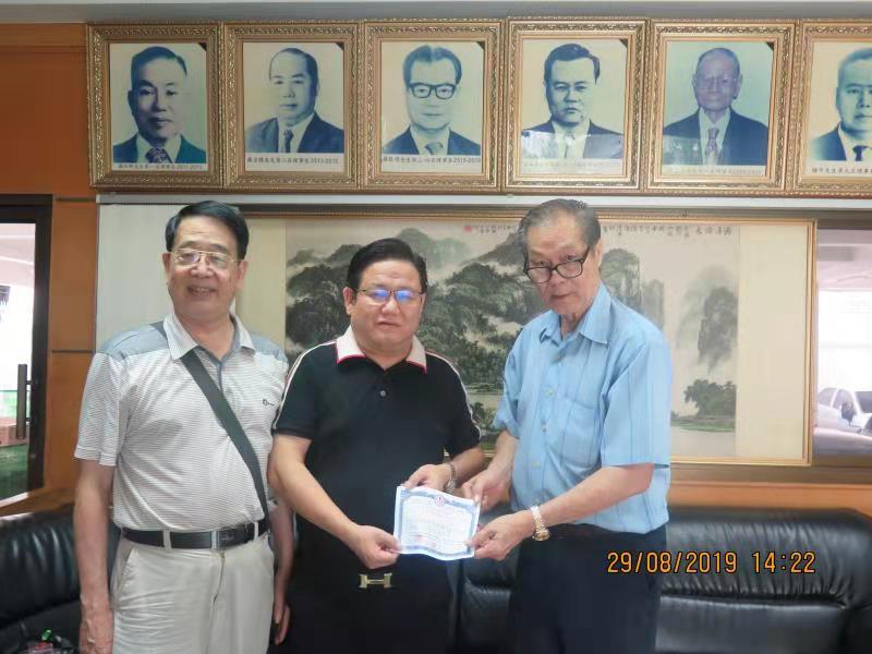 2019.8.29,上午,笔者偕同在泰公干的本会副主席、中国民营经济研究会内参理事会副会长、广西宏纲投资集团公司董事长罗成纲,再次参访泰国罗氏宗亲总会。罗董事长代表《罗氏通谱》编委会向泰国罗氏宗亲总会捐款二万泰株。该会中文秘书罗树雄介绍了泰国罗氏宗亲总会现况,并接受了捐款并开出收据。
