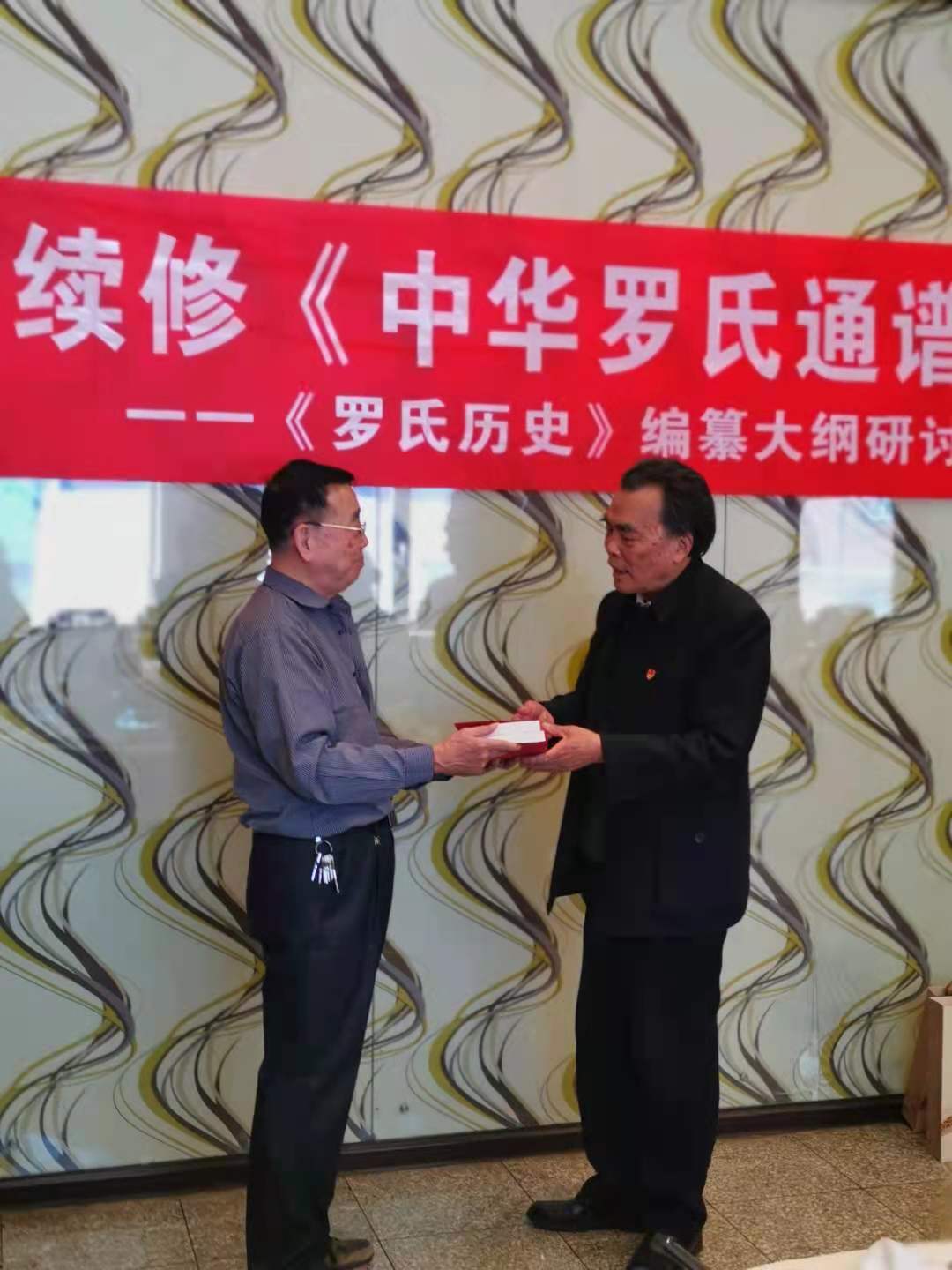 笔者简要介绍了续修《中华罗氏通谱》——《罗氏历史》编纂大纲,强调了本会前主席、开国中将罗元发制定的宗旨:尊重历史,实事求是,上仰列宗,下对子孙,经得起历史检验。 汇报了将总部设在福建省历史文化名村洋头,创建“洋头罗含书院”以研究罗氏历史文化传承体系的意义,并分发了《洋头村简介》。
