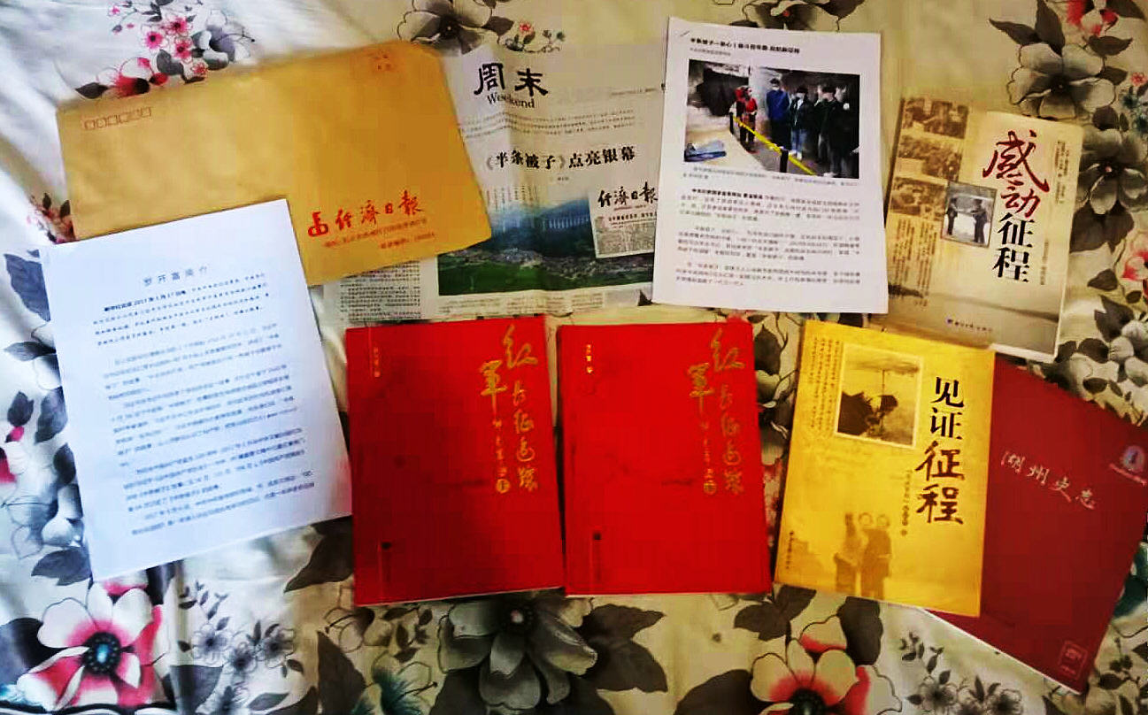 本会北京联络处秘书长罗龙秋,是参会的唯一“年轻人”,金融学博士后,央企正处级干部,他表示要向老一辈认真学习优秀的传统文化和红色文化,争取当好接班人。 会后,罗开富向笔者赠送了《红军长征追踪》、《见证征程》、《感动征程》、《经济日报》2019.11.24周未版“《半条被子》点亮屏幕”、中央纪委国家监委网站“半条被子一条心。奋斗百年路,启航新征程”、《湖州史志》等珍贵的书刊资料。并赠送一张大号彩照:2017年1日16日,中共中央常委刘云山代表习近平总书记和党中央到罗开富家里祝贺新春。
