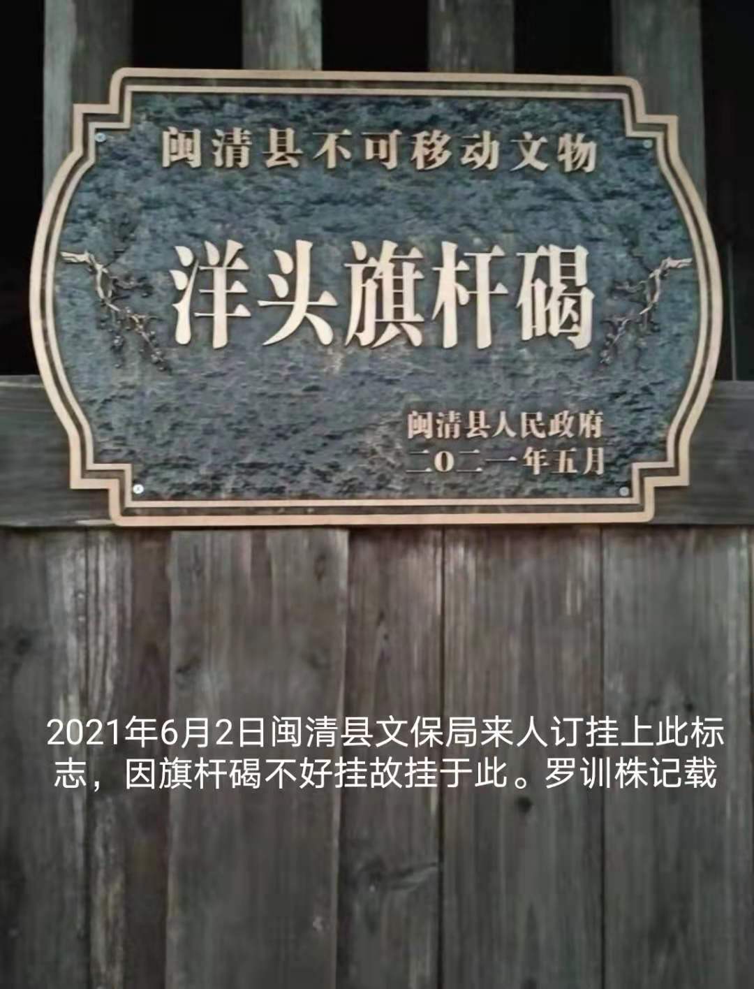 【洋头罗含书院(筹)2021.7.28福州讯(罗训森)】 2021.6.2,由闽清县人民政府颁发“闽清县不可移动文物:洋头旗杆碣”牌匾,已挂在福建省历史文化名村洋头罗氏祖厝。