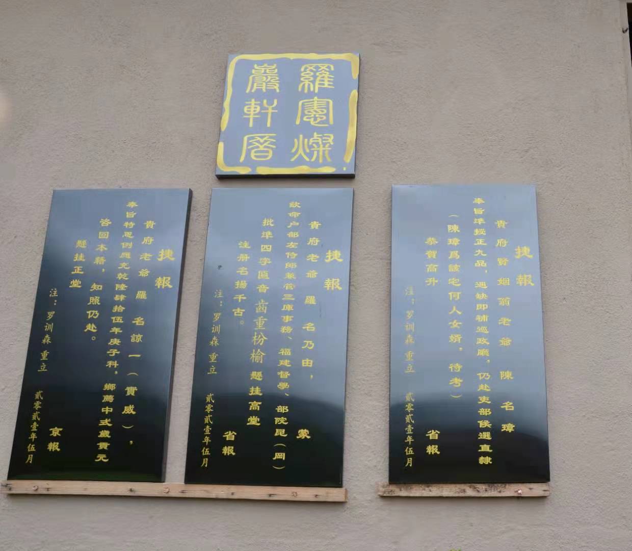 2021.5.18,洋头罗含书院(筹)、中华罗氏通谱编纂委员会、福建省敦睦姓氏谱牒研究院同时在福建省历史文化名村——福州市闽清县下祝乡洋头村81号“罗菩萨”罗绮,字首章裔孙罗宪灿岩轩厝挂牌。