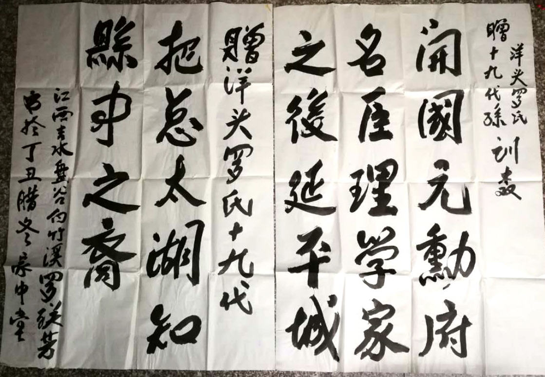 在吉安吉水寻根一个多月,幸获罗联芳代表竹溪罗氏赠联相送。