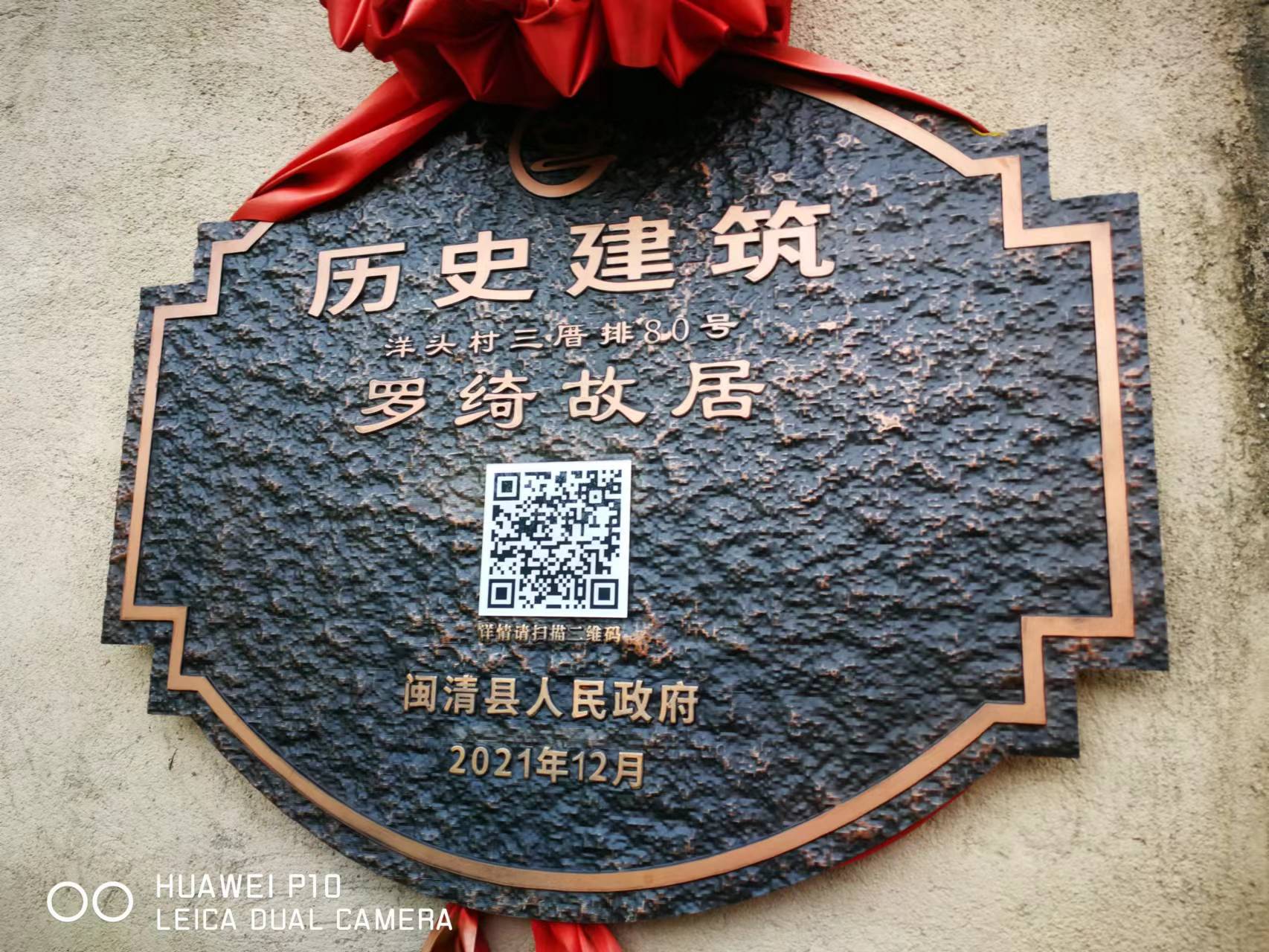 据闽清县政府【2021】192号文,下祝乡洋头村80,81号,为“洋头村三厝排罗绮故居”。