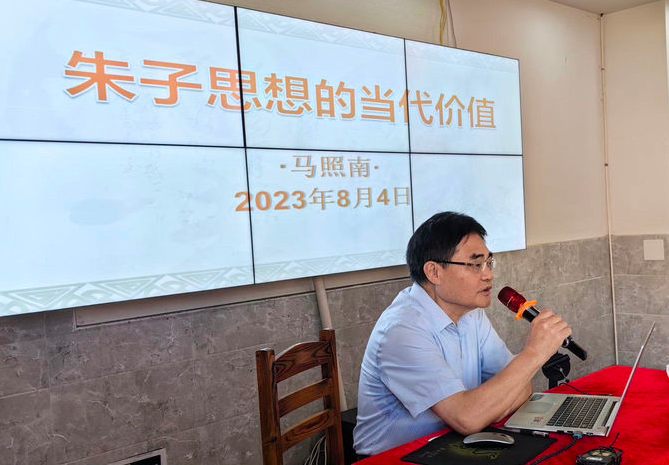 福建省炎黄文化研究会常务副会长、中共福建省委宣传部原副部长、中国朱子学会顾问马照南作《朱子思想的当代价值》讲座。马照南总结了朱子对中华文化的五项突出贡献:“集注四书,确立文化新经典;创立道统,延续思想谱系;创新义理范畴,重构哲学体系;重整教育,倡导修齐治平;化民成俗,重塑文化礼仪。”