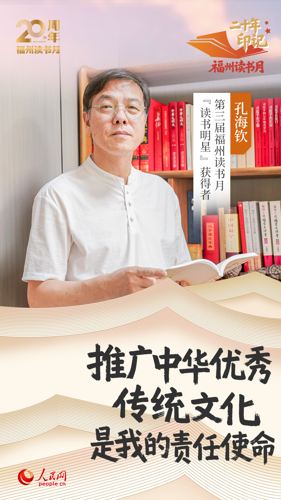 一转眼,这条由己及人、从身边到世界的传统文化推广之路,孔海钦已经走了数十年。第三届福州读书月期间,孔海钦就被评选为“读书明星”,不久前,又获评2025年度美育人物贡献奖。承文脉以育人,孔海钦“修己以安天下”的探索还在继续。