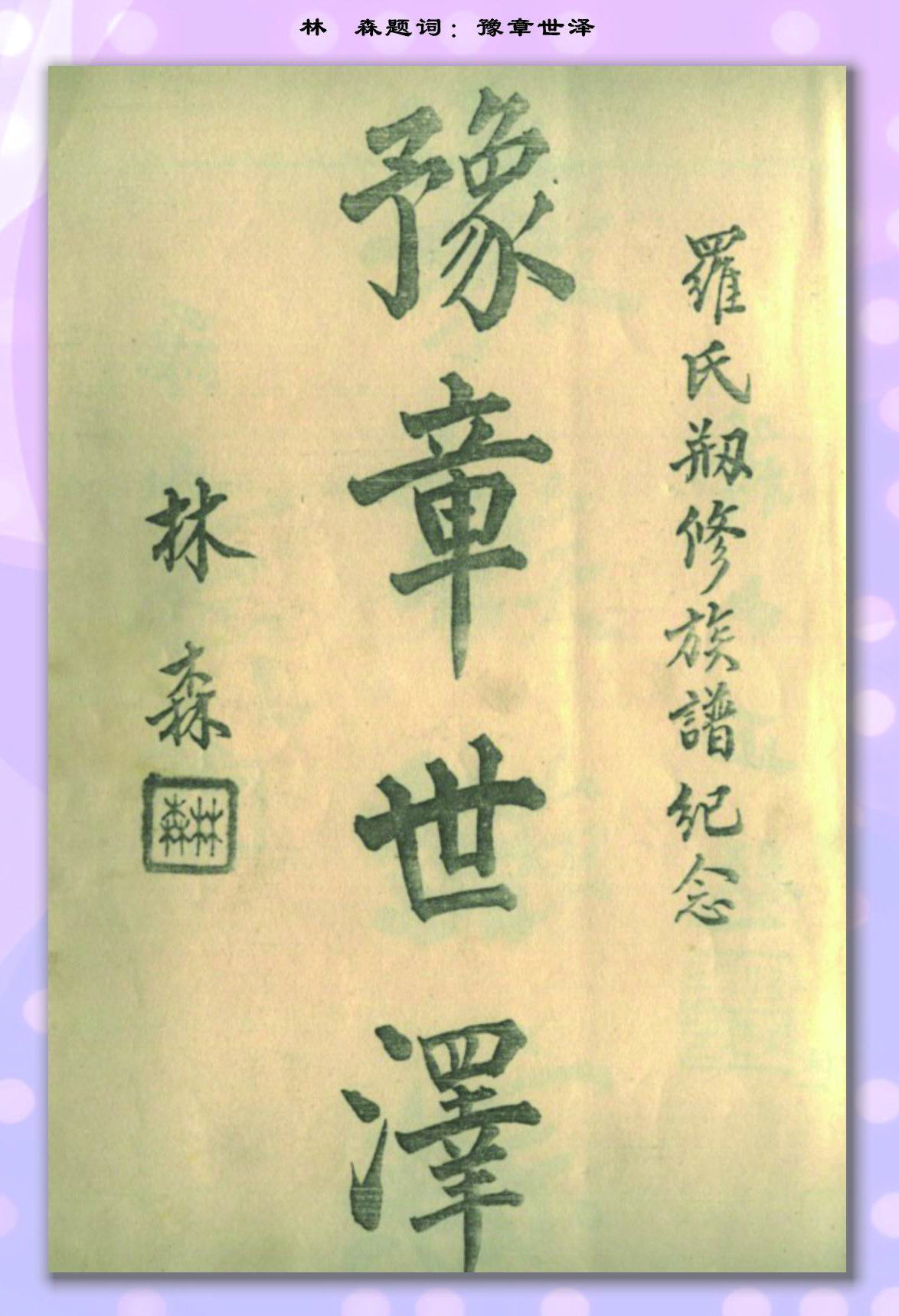 原国府主席林森为罗启疆编修《罗氏族谱》题词——豫章世泽 各姓资讯, 图片资讯, 敦睦姓氏谱牒研究院, 文物古迹, 文献卷, 林氏资讯, 网络通谱, 罗氏资讯 2014 年 10 月 3 日 luoxunsen 添加评论 训森注:“剏”,异体字,同“创”。 来源:2007年版《中华罗氏通谱》 录入:罗训森 2014.10.3
