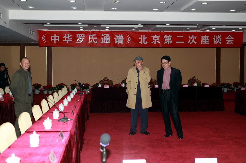 《中华罗氏通谱》北京第二次座谈会花絮(图片集锦) 参访及会议, 图片资讯, 编纂动态, 罗氏资讯 2014 年 11 月 7 日 luoxunsen 添加评论 《中华罗氏通谱》北京第二次座谈会花絮 图一:2014.10.26,上午,会议开始前,罗箭将军(中)亲自检查桌面代表牌排放情况,罗训森总编陪同检查(右),会议常务副秘书长罗卫(左)。 图二:2014.10.26,《中华罗氏通谱》北京第二次座谈会上,罗箭将军(右)在湖北麻城刑警原大队长、罗氏文化组织会长罗文举(左)的笔记本上签名。 (待增加) 供稿、录入:罗训森 2014.11.7