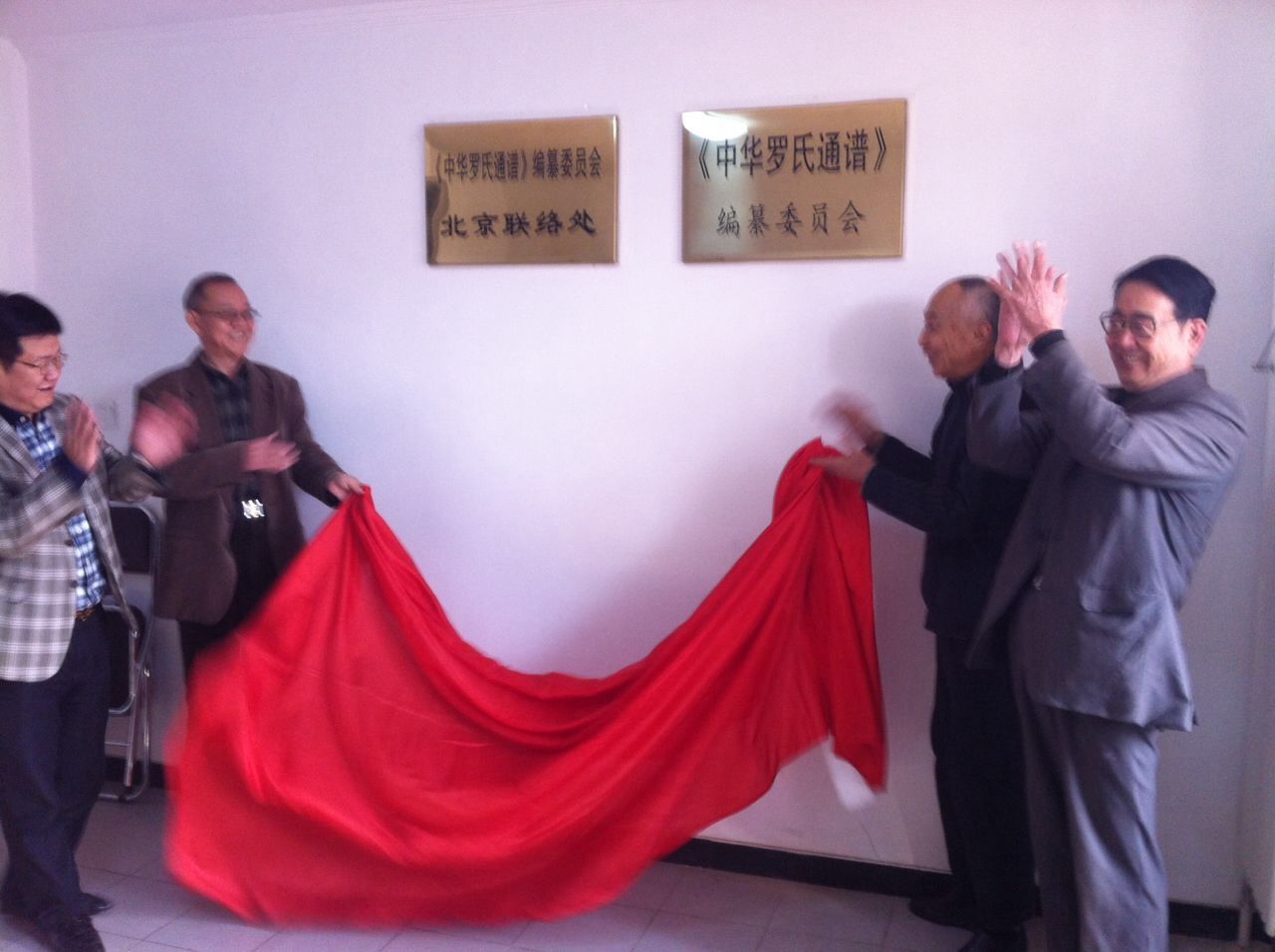 [本会2014.12,19,北京讯] 2014.12.18,上午11时(原定10时,因交通问题,造成有的代表延误),在北京市丰台区东大街东里4号楼一单元503室,举行:中华罗氏通谱编纂委员会暨北京联络处揭牌仪式。