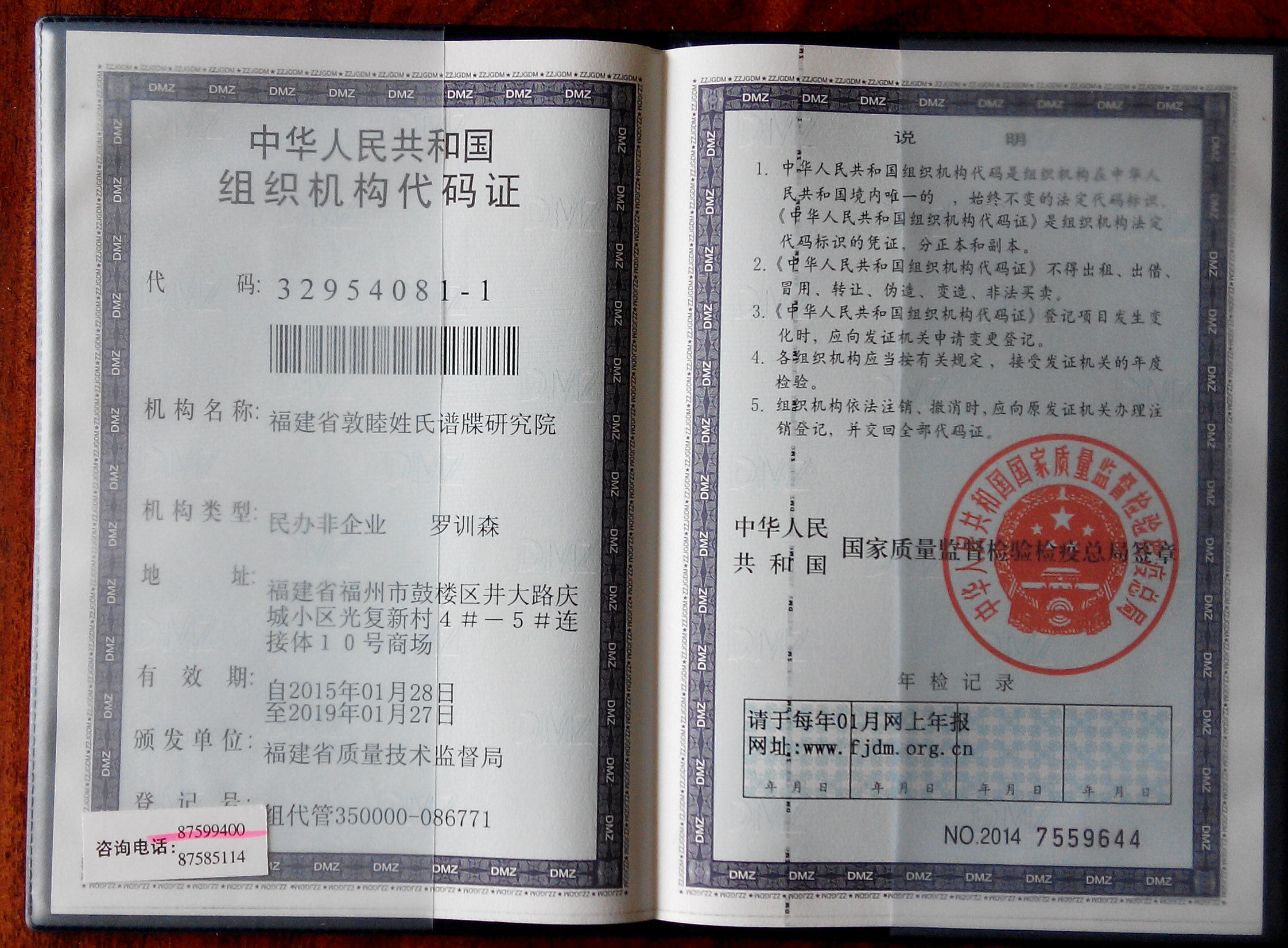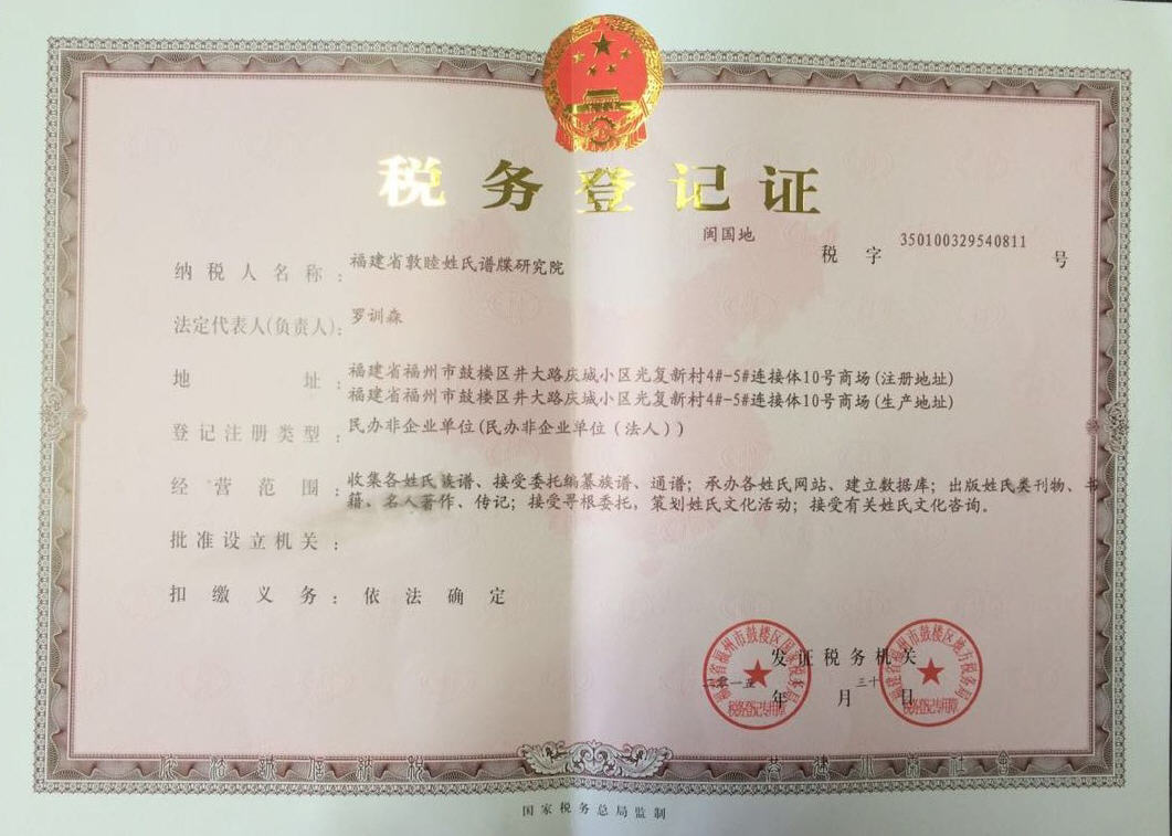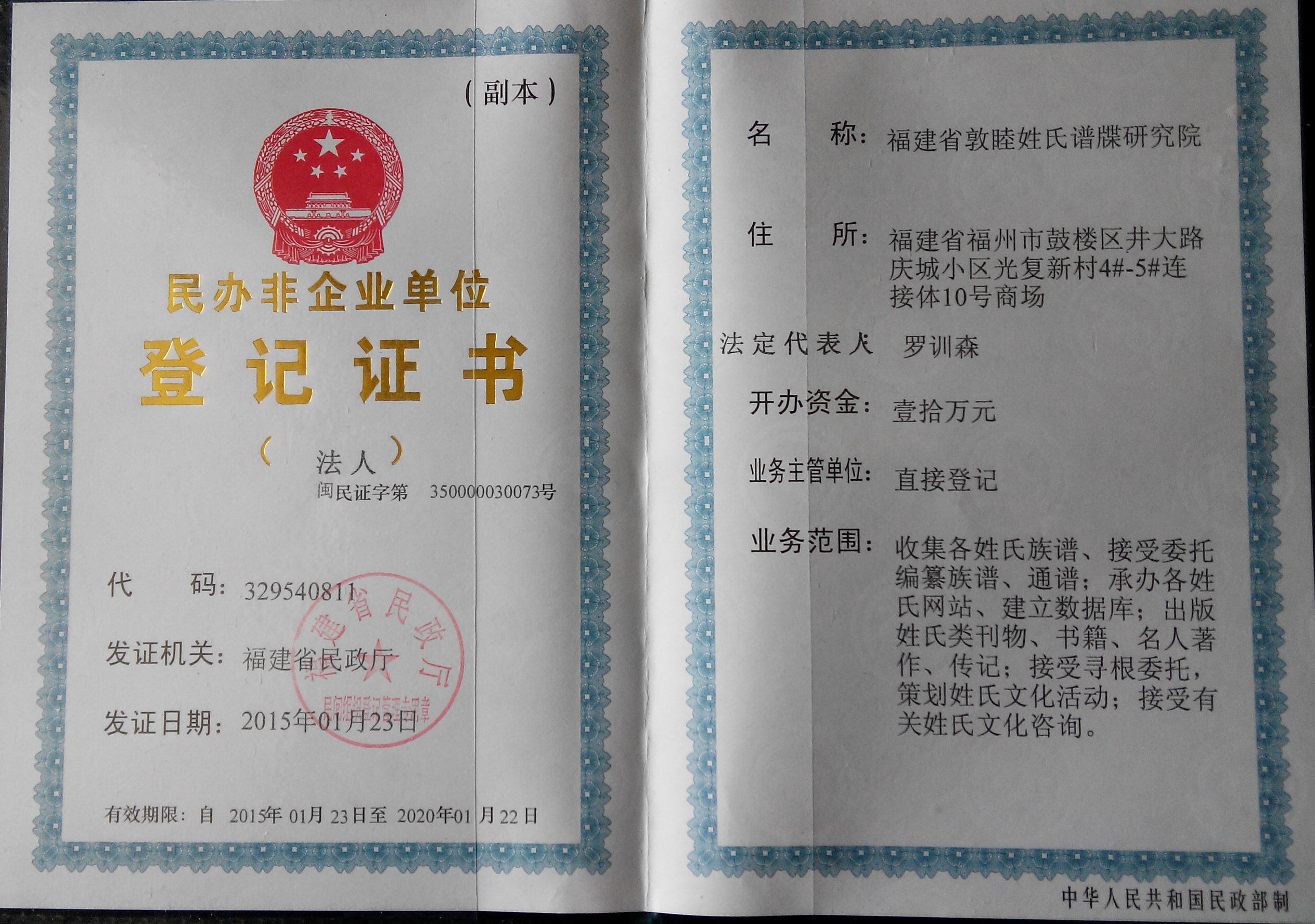说实在的,原仅想通过福建省姓氏源流研究会为本会批个二级法人银行账户,无奈该会换届难产,无法开展正常业务。按现有政策,民政部门是不会批准单个姓氏的文化组织,中华罗氏通谱编纂委员会只能作为省二级法人单位。